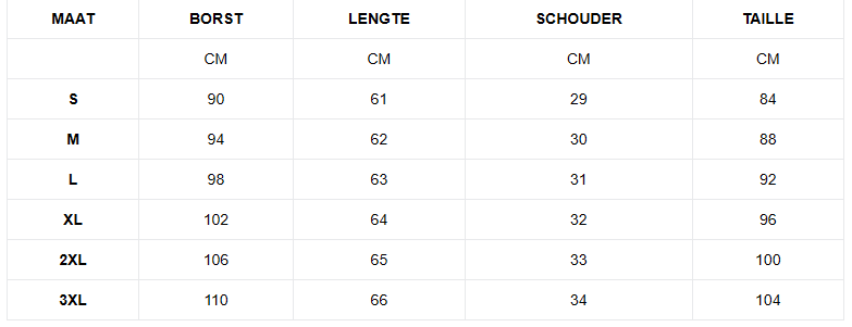 | XL | 104–108 | 61 |